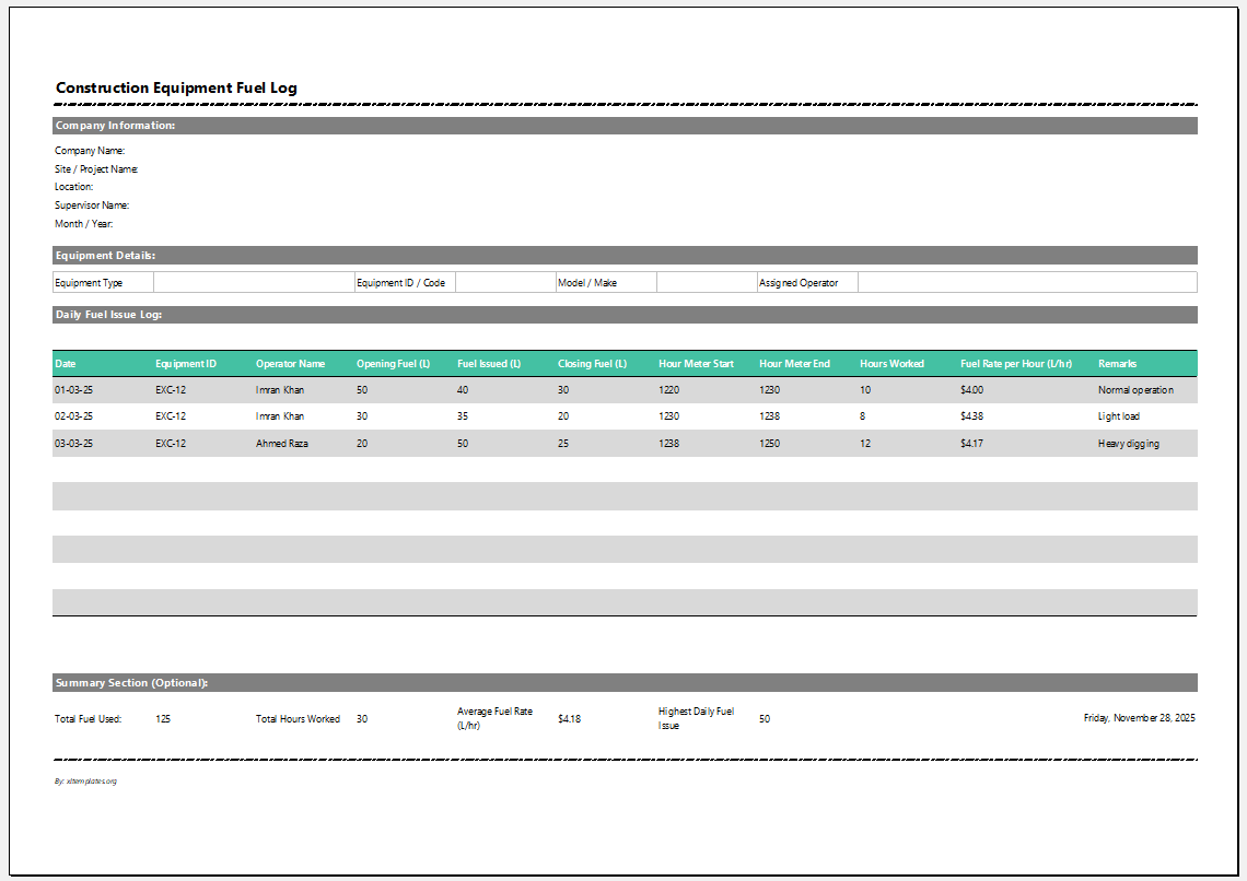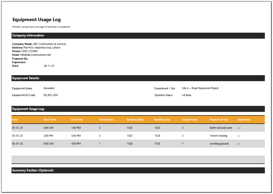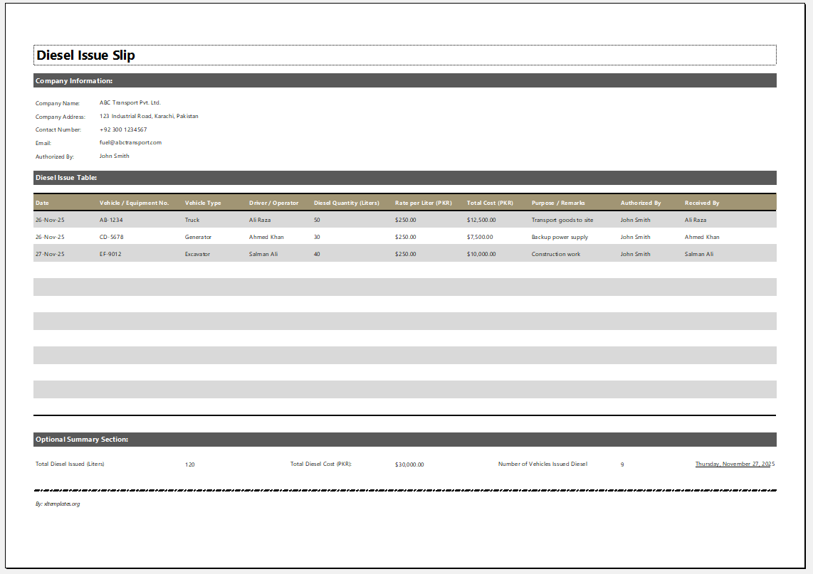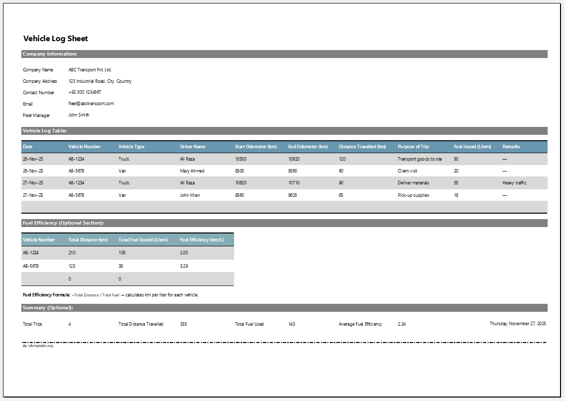 These templates are designed to save time, reduce errors, and ensure transparency in operational management. Whether you’re running a fleet, managing a construction site, or handling deliveries, these ready-to-use sheets provide a practical way to track resources and improve efficiency.